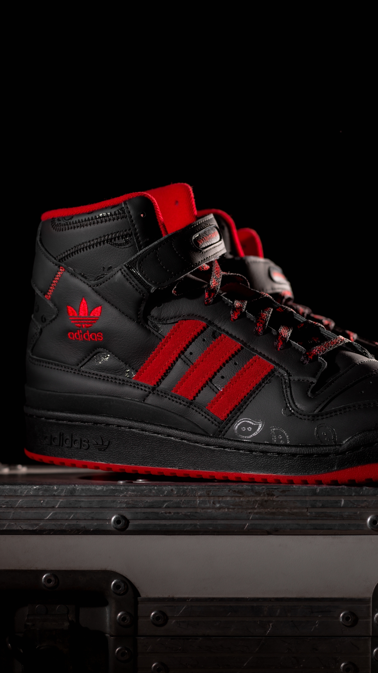 The iconic Forum Hi has undergone a slick renovation, with a light-reflecting paisley print on smooth black leather and vivid red accents throughout. Three lace jewels also feature, along the usual Forum Hi mainstays: webbing on the midsole, a breathable perforated toe box and grippy rubber outsole.