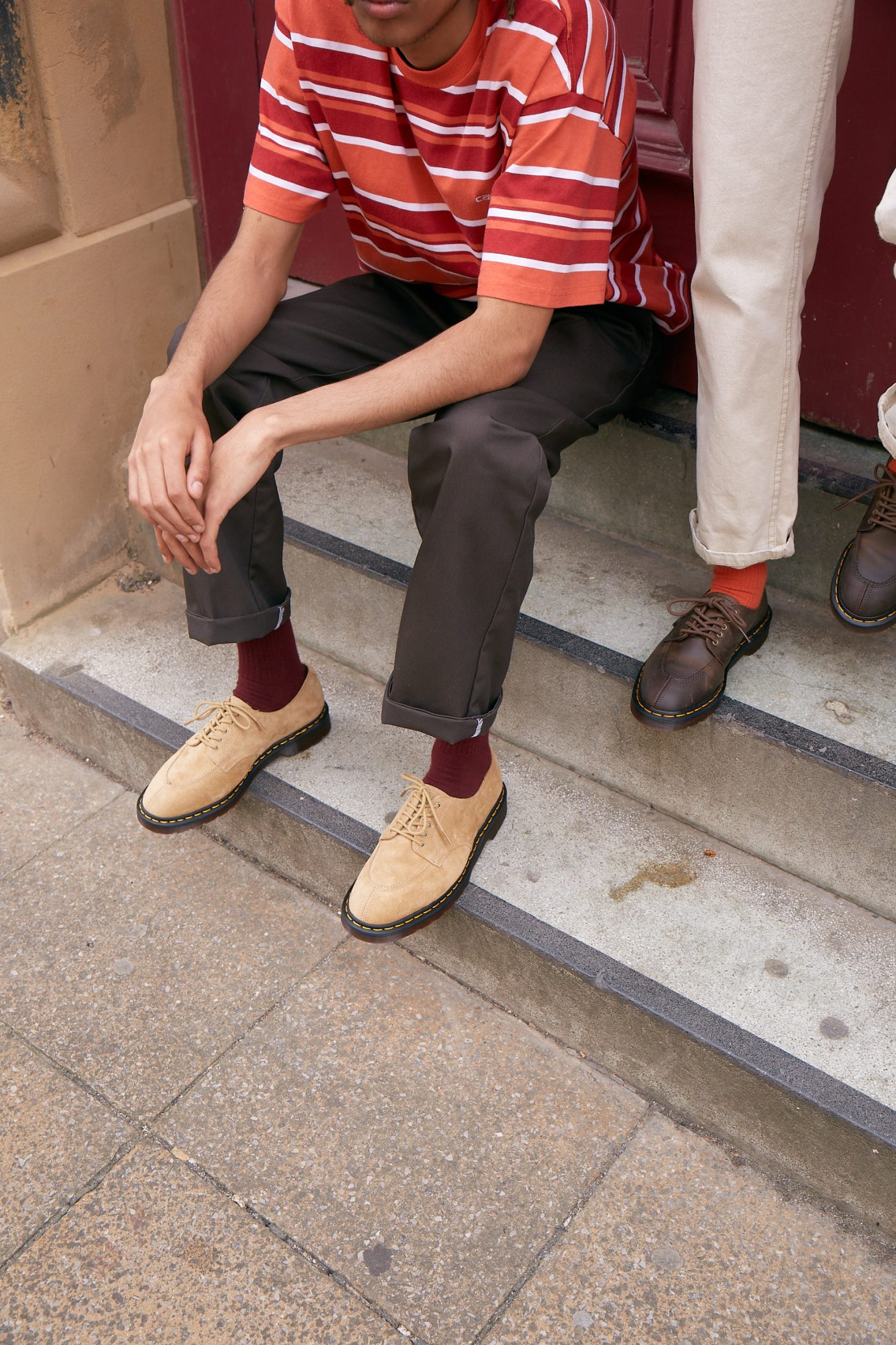 Classic Dr. Martens style – this is the shoe that you need for this season. Smooth leather or soft suede normally fills the upper of this silhouette, while AirWair technology is injected into the sole unit. Yellow stitching provides the brand’s defining look and a tidy lacing system up top has tonal laces looping through the metal eyelets. Additionally, the shoe is constructed with a Goodyear-welt, meaning the upper and sole are heat-sealed and sewn together for the utmost durability.