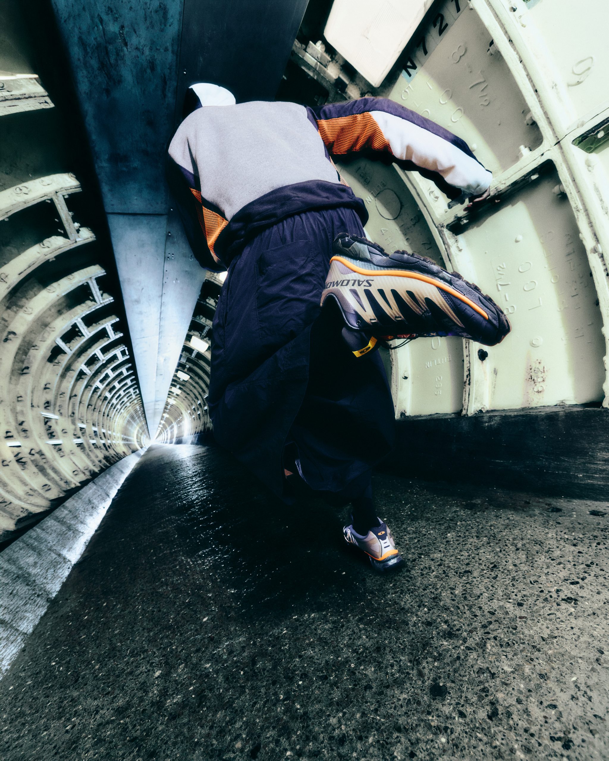 That same forward energy resonates with mixed media artist and photographer Ramsey Ramone. Known for his raw, instinctive visual language, and as a freelance photographer who’s worked with the likes of Esdee Kid, Ramsey has captured some of the UK’s most influential voices shaping culture today. His creative direction spans texture, movement and emotion, working across stills, trailers and lookbooks. We caught up with Ramsey to talk about his work and the ideas behind this latest Salomon project.