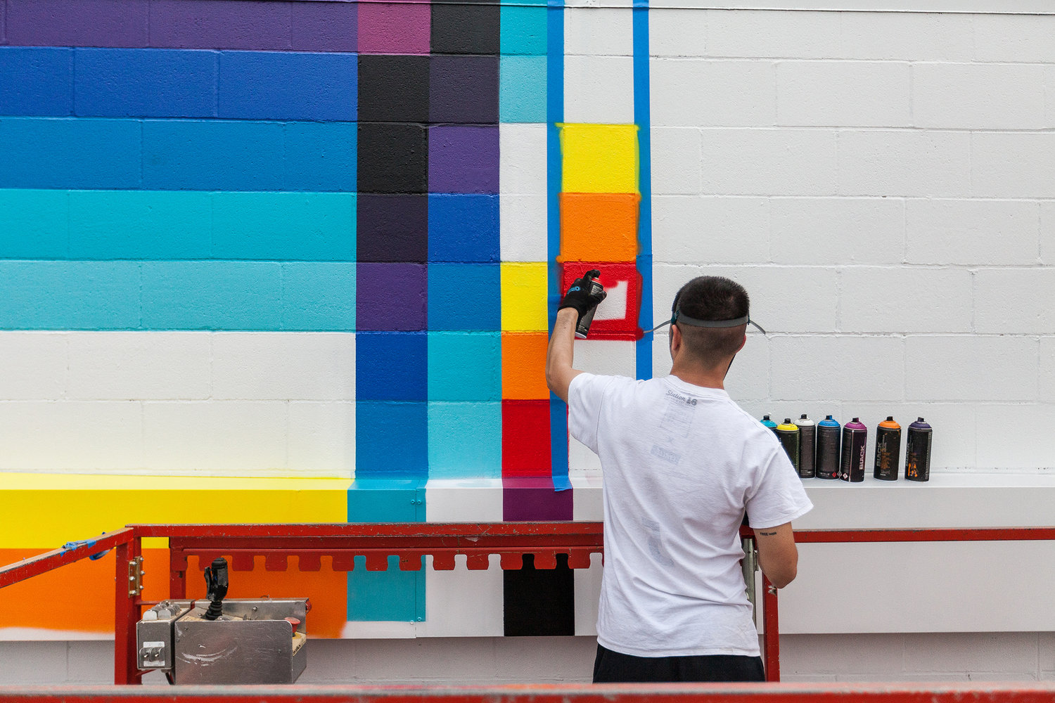 Ceilings are often overlooked elements found within a space, in particularly within a store environment. We commissioned Spanish graffiti writer and fine artist Felipe Pantone to create bespoke artwork to fit within our new location, making use of his latest ‘Ultradynamism’ work which he’s been spreading globally. We sat down with Felipe briefly to find out how each of his artistic practices informs the other, and how his progressive work his helped him exhibit around the world.