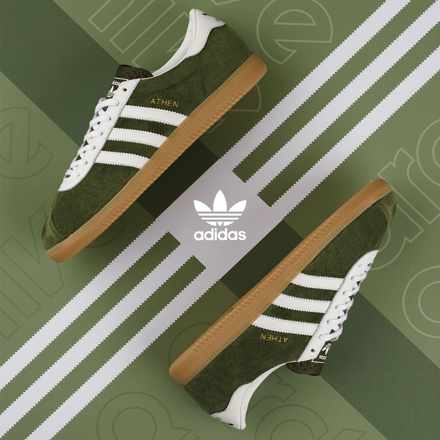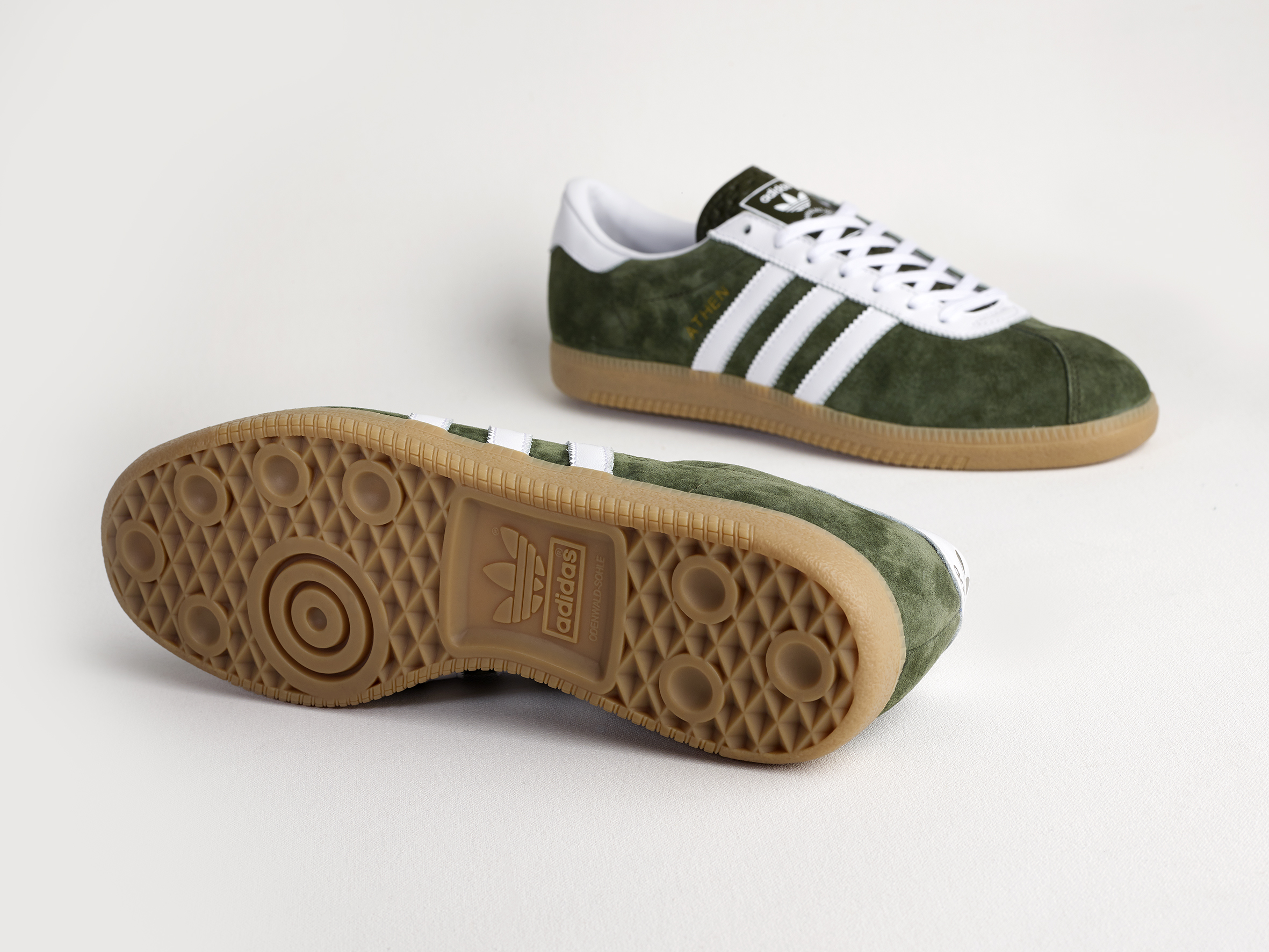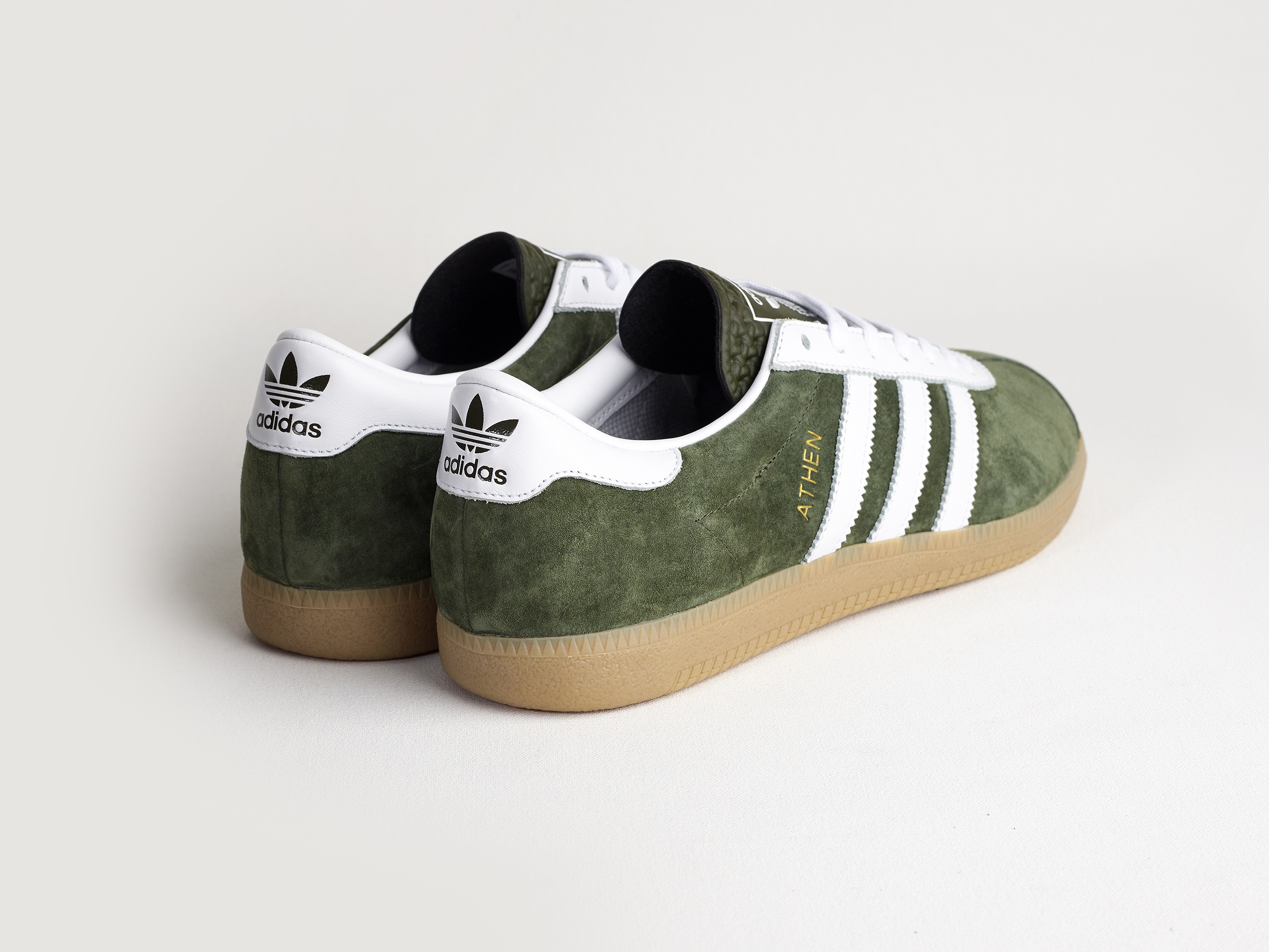 Our latest exclusive rendition of the lauded adidas Originals Athen see’s a rich Forest Green suede applied to the upper, accented by White leather stripes and detailing. Gold foil ‘Athen’ branding sits above the top stripe, and the release is finished off with the signature gum Odenwald midsole underfoot. We’re pleased to present this latest colourway that we feel pays homage to great shoes from years gone by, and continues to build the legacy of a great silhouette.