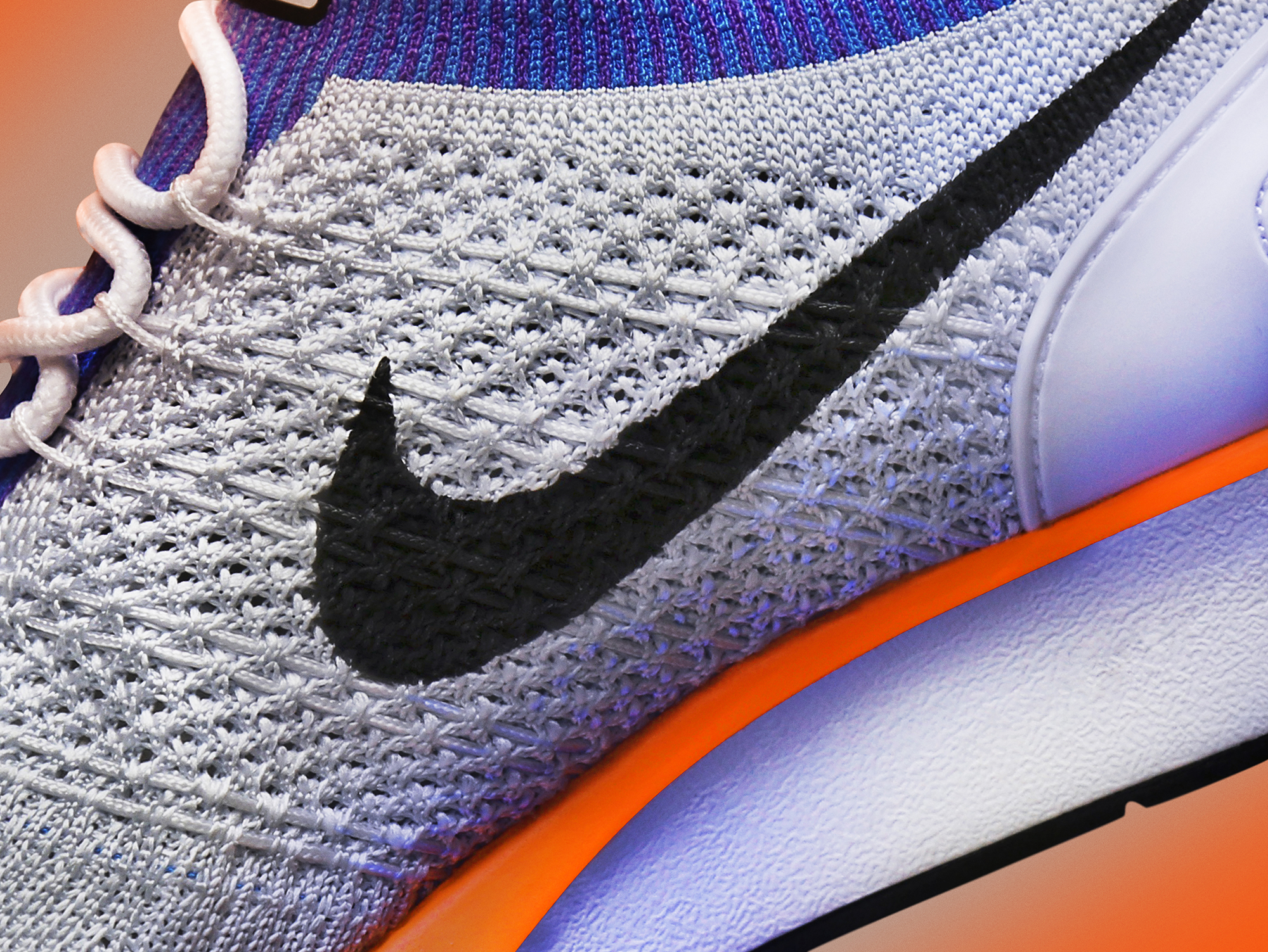 We’ve seen the woven fibre applied to a selection of icons from the back catalogue since Flyknit’s inception in 2012, notably the Air Max 1 and Air Force 1 in recent years, but vintage runners haven’t really had a look in until now. This latest release draws inspiration from 1981’s lightweight runner, the Zoom Mariah Racer Flyknit takes the streamlined profile of the original and updates it for the modern day. A full flyknit upper has been added to the upper in a similar fashion to 2012’s Flyknit Racer, and an additional heel counter has been included for extra support in the rear.