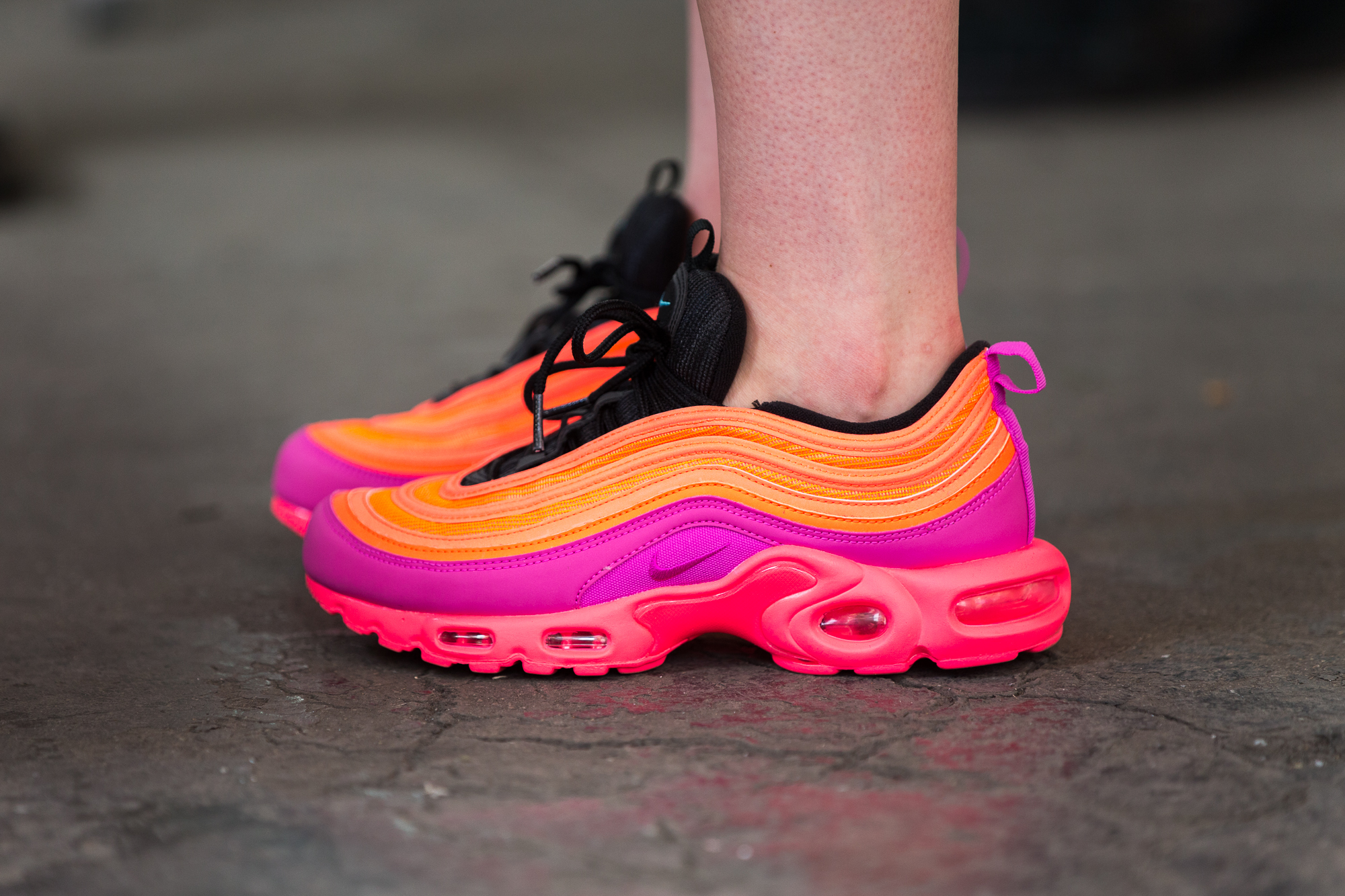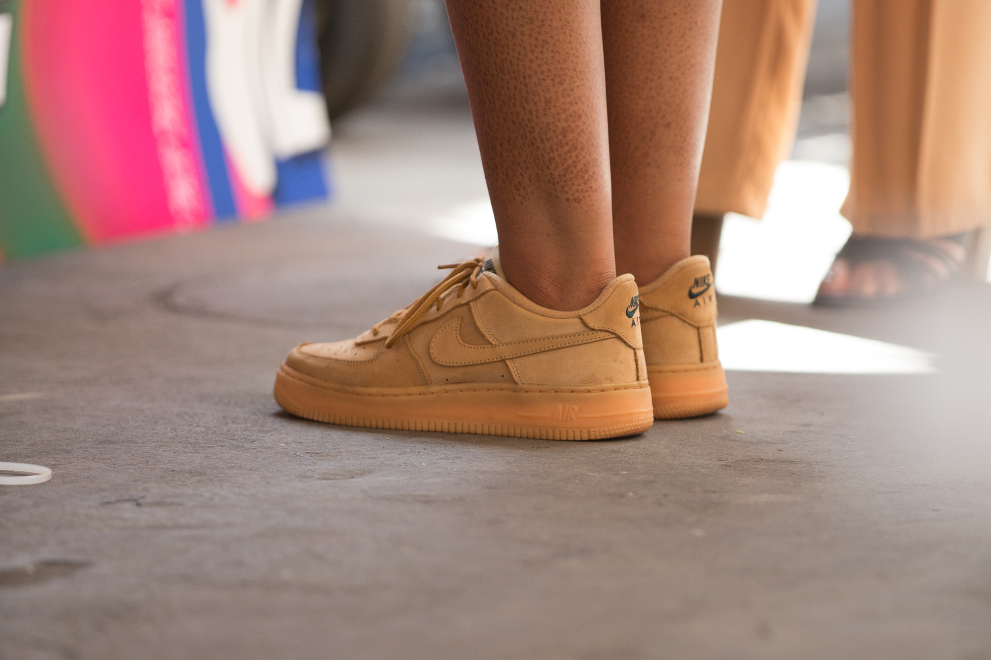 The day began with the Graduate Fashion Week Collective of students from Falmouth University, the Plymouth College of Art, and more. We teamed up with Plymouth College of Art students to donate footwear for their catwalk show, including Emily Hayward who chose Nike’s iconic Air Max 95 and Air Max 97, opting for the Terrazzo edition’s fragmented marble-like colour-blocking. Digging into the adidas Originals Archive, Amy Bray’s collection was also partnered with the Gazelle, one of the brand’s classic training and football silhouettes of the 1960s.